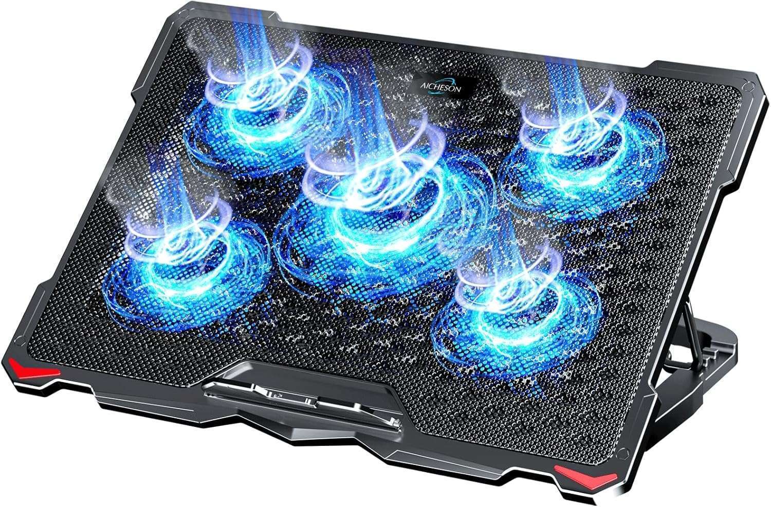 Fan setup: 5 cooling fans, one large + four smallSupport size: Works with laptops up to 17.3 inches