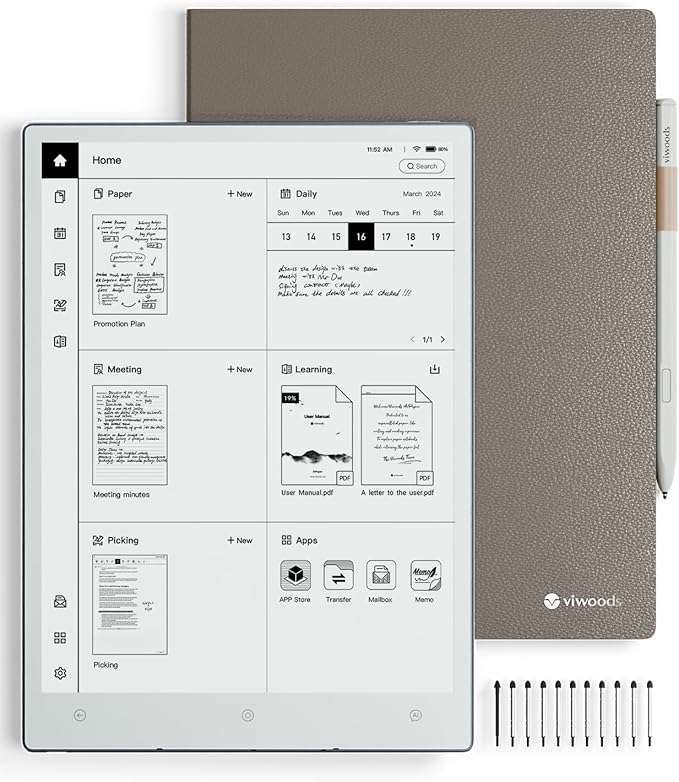 High-resolution display mimics paper.AI note organization boosts efficiency.