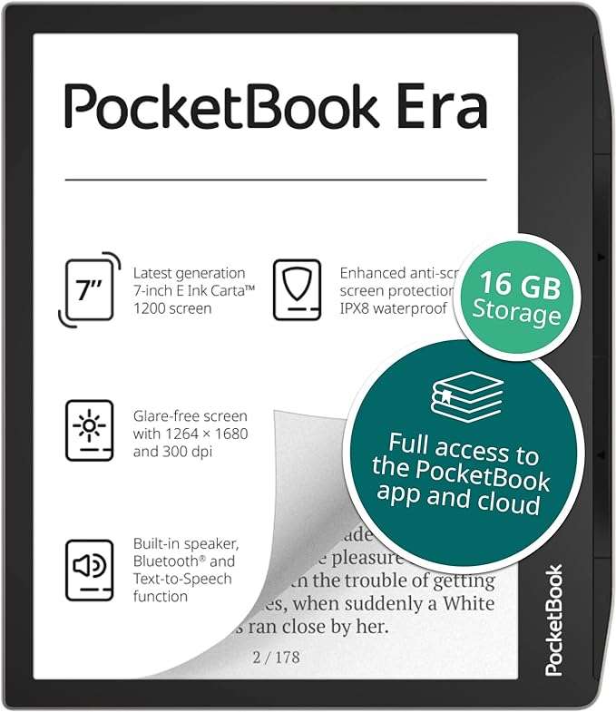 Waterproof build ensures durability.High-resolution screen sharpens text.